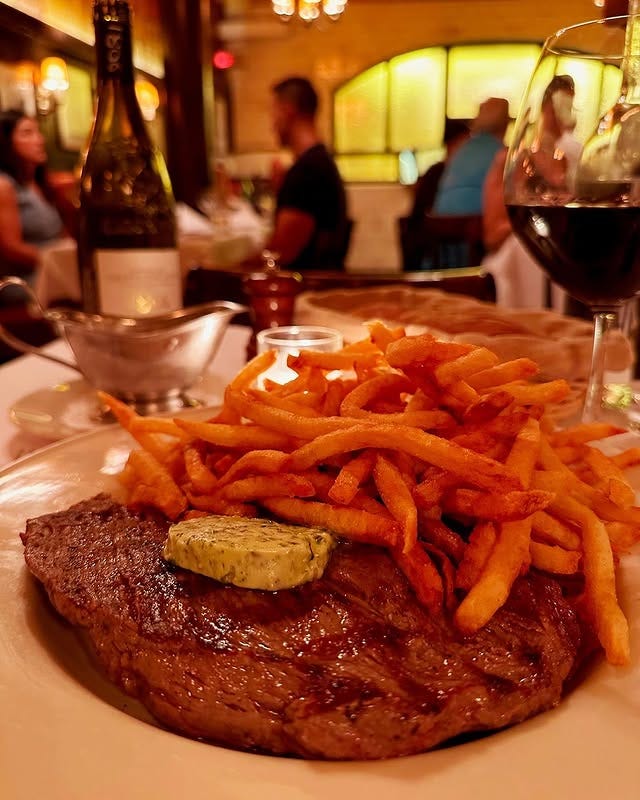 On Memorial Day, every part of me just wanted a hot dog, but I abstained (unfortunately) and laid pretty low during the afternoon before meeting a good friend from LA for a “one to the other” dinner. With it being both a Monday and a holiday, the choices were slimmer than usual, and we decided to meet at Minetta Tavern and see what happened from there. Within moments of walking through the door, the team had me at a bar seat with a chilled martini in hand. I didn’t feel like going for the whole steak and burger thing, so we decided we’d eat light and head to another spot afterwards. We decided to go with the steak tartare and moules frites, both dishes I had never previously ordered here and were worth checking out. The tartare was finely chopped and leaned more towards an Italian beef carpaccio flavor profile, topped with a perfectly boiled quail egg and shaved parmesan. The moules frites were great; the mussels were swimming in a creamy broth, just screaming to be invaded by the fries.