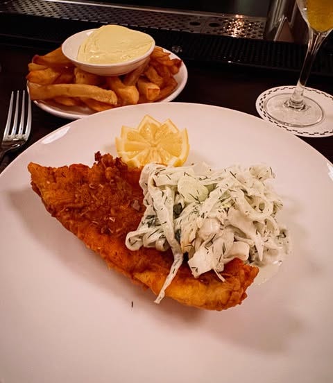 I hadn’t eaten at Chez Ma Tante since it reopened after a prolonged period of closure due to structural issues with its building. I found myself in Greenpoint for work and decided to check back in on the place for an early dinner. While their brunch and pancakes still (deservedly) deserve a ton of hype, I'm happy to say that dinner was just as good as ever. Both my friend and I were starving and overjoyed to see how quickly our first dish, chicken liver pâté, emerged from the kitchen to get us started. The pâté was served in a small bowl, topped with flaky salt, bread, and accompanied by a pile of gherkins on the side. I have always found all of the pates to be strong points here, and this one was no different. We followed that with a garlicky and anchovy-forward Caesar salad covered in large shavings of parmesan cheese, which really hit the spot. After the salad, a new dish was added to the menu: perfectly cooked Cornish hen (I love the little birds), served whole in a jus with hot mustard and ramps, with roasted cloves of garlic draped over the top. It was as delicious as it was fun to eat. The last dish was a happy accident that turned into an amazing version of fish and chips when we ordered the side of chips and aioli (non-negotiable here), as well as the dorade, which, surprisingly, was a nicely fried fillet that came with an amazing dill-forward fennel salad and crème fraîche. Together, they were perfect and a great way to end the meal. This place is still firing on all cylinders, and I can’t wait to come back.