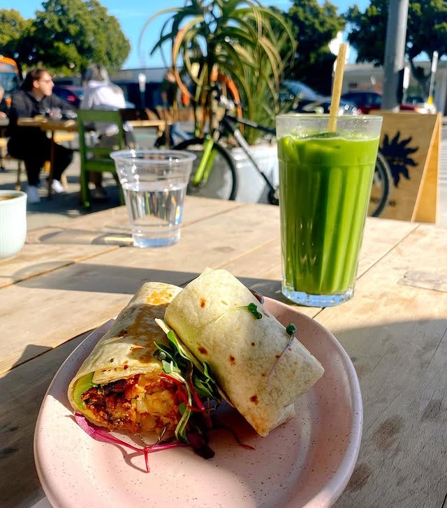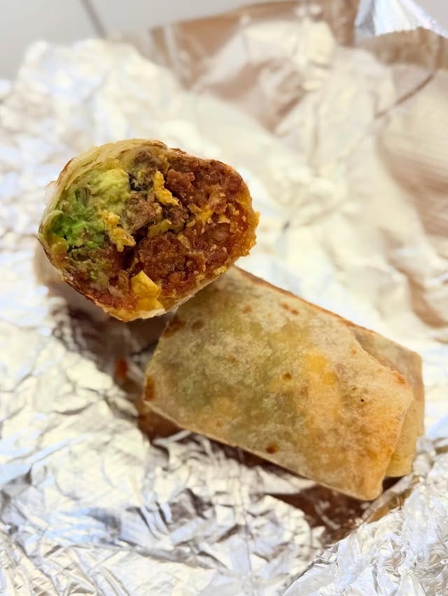 My friend Sarah has recently been traveling a ton for work in LA and put me on to Wake and Late, a small chain serving breakfast burritos. After a quick workout, I was excited to discover that a location was just 300 feet from the gym, so I decided to stop by for a post-workout snack. I decided to try both styles of burrito. The first was their classic breakfast burrito that I ordered with bacon and came with eggs, cheese, avocado, and super crispy tater tots all wrapped up in a great flour tortilla. It was definitely everything you wanted in a breakfast burrito, and I think it was one of the best I have had. The other burrito was called Juarez style and is quite a bit smaller, served with just refried beans, pickled onions, and garlic crema. Because of my bean and cheese burrito obsession recently, I also added some cheese, and it was a really great little burrito. I appreciate the more compact size of the Juarez style and wish there were more places in NYC where you could get stuff like this. Burritos don’t always need to be so big; sometimes you just want a little snack.