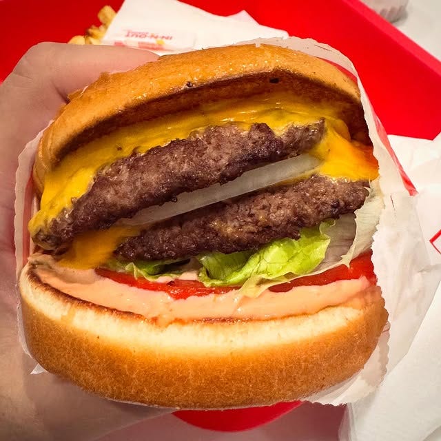 People love to debate about In-N-Out. For those who live under a rock, In-N-Out is the famous West Coast burger chain that consistently has cheery staff, historically pays them very well, offers affordable burgers that taste fresh, serves abysmally fried fries, and boasts a “secret menu” that is very public and fun. To me, In-N-Out is the platonic ideal of a West Coast burger, where it’s not about the meat as much as it’s about the construction and accoutrements. They do a really great job at both, and I make it my business to come to a location whenever I am close to one. For me, the real debate isn’t about In-N-Out vs X, but In-N-Out vs itself. Hear me out…every person going for their first time has always been told about an amazing burger mod you can get here called “animal style.” It sounds cool, feral, fun and makes you want to be part of the secret club. In actuality, animal style is just cooking the burger in mustard, adding grilled onions, pickles, and extra sauce. My personal hot take: Animal style is BS, people just like to say it. I think it just makes people feel cool to order off-menu. If you actually taste the burgers side by side, a double double (with onion) smokes it every time. It holds its integrity, is more well-constructed, and actually just tastes better. Don’t @ me here, do yourself a favor and try them side by side, and I guarantee you’ll be switching your order the next time you visit.