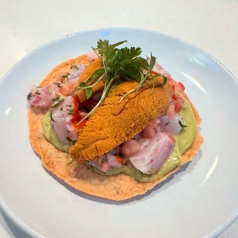 Holbox has been at the top of my list for what seems like forever. I finally found the right moment on my way to the east side of town to break up the trip a little bit and catch them during the week when it’s a bit less of a hassle to get in. Holbox is a small seafood counter and some tables inside of a food market called Mercado La Paloma in South LA, and has received a ton of hype. I had a meal later, so I went pretty light but wanted to try a few things. Everything I had was delicious, but my two favorite bites were the tostada with Kanpachi and uni. This seems to be the dish you see all over the place, and it’s for good reason. Creamy and briny uni over a crispy tostada, with the slight chew of mild kanpachi and a bit of tomato salsa and avocado sauce. It is a really great bite. The more surprising dish to me, though, was the smoked kanpachi taco, served folded over, sporting deliciously smoky fish mixed with cheese and topped with avocado slices and a salsa macha. It’s the bite I’m still thinking about, almost a week later.