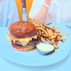 Horses is another one of my absolute favorite restaurants in LA. As I tend to do, I have now made it a tradition to stop there for my last meal in town with my bags in tow. Something I’ve noticed in LA that is very different from NYC is that restaurants don’t necessarily always have a full bar. Many restaurants out there only offer beer and wine, and it seems like the norm, where in NYC, you rarely see a full restaurant without a full bar. When I look for a real restaurant experience, cocktails are just part of it for me, and it’s something that still feels missing from the overall LA scene. Fortunately, Horses is just a great restaurant. It has all the things you need: a classic space, great drinks, dining rooms with very different moods, and some really delicious food. For my last meal of this trip, I met up with my good friends Emily (The Angel) and David to have one more great bite before I left town. To start, the Vesper is really fantastic here, served in a nice, rounded martini glass with fig leaf-infused gin, vodka, Lillet blanc, and a lemon twist. The Caesar salad is a must-order, with endive in a creamy dressing, adding a slight bitterness to the classic. We followed that with a classic tuna tartare, plated over thin slices of avocado and served with crispy lavash. As a special that evening we also ordered a really delicious and perfectly in-season tomato and peach panzanella, served with very large and crispy croutons. The fruit was really bright and juicy, which kept me coming back for more. For the main dishes, we ordered the famously off-menu pasta Herman, which is baked in a skillet and tastes like a much more intense vodka sauce, punched up with some spicy nduja. It was my first time trying the pasta, and it was really good. For me, though, I always come for the burger. The Horses cheeseburger is served pretty classic with a slice of cheese and onion done two ways: melted and raw. The melted onions serve almost as a special sauce to the burger, using their sweetness to help round out the meaty flavor, while the raw onions provide some texture and a sharper bite. The fries are also top-notch. Finish the meal off with the sheep's milk cheesecake, and you, my friend, are ready to board the redeye back to NYC.