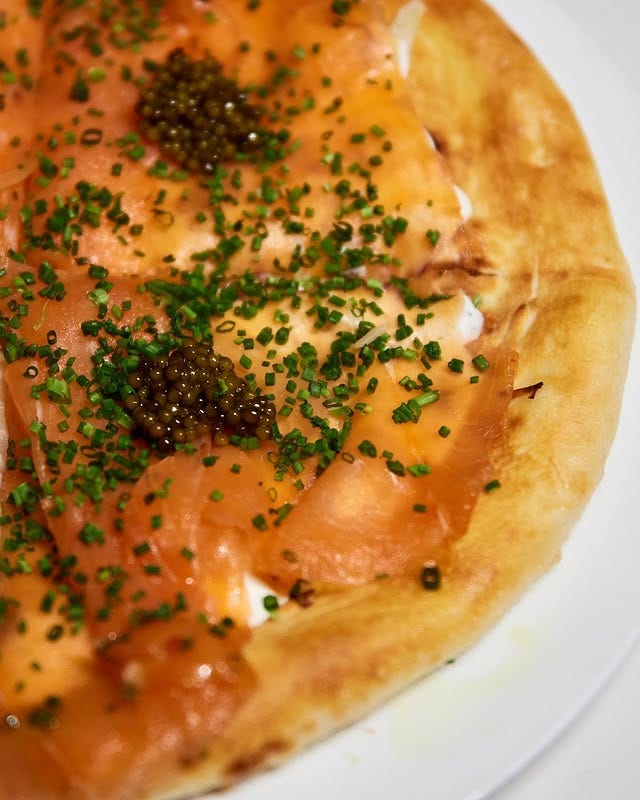 Spago is THE fine dining LA restaurant. Wolfgang Puck’s most famous restaurant is a place you still see him working the room regularly (so I’m told). I had never been, but on the way to a light meal, we decided to pop by for a drink and snack. The room looks classic and is really light and airy, with a courtyard for dining just behind the bar. The bar itself feels really elegant and has really incredible soft barstools with backs (I’m definitely getting old). I ordered a Del Maguey Santo Domingo Albarradas mezcal neat, which was followed shortly by a delicious house martini. We also decided to go for the smoked salmon pizza, which is one of the most classic dishes in LA. Smoked salmon atop a cracker-like pizza dough, covering crème fraîche mixed with some red onions, and topped with salmon roe. Honestly, there is nothing not to like about it, and it felt great to try a classic. I would definitely recommend it and would love to go back again to hang out at the bar.